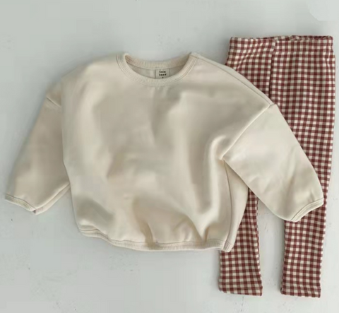 CINNAMON PLAID LEGGINGS AND OATMEAL SWEATER SET