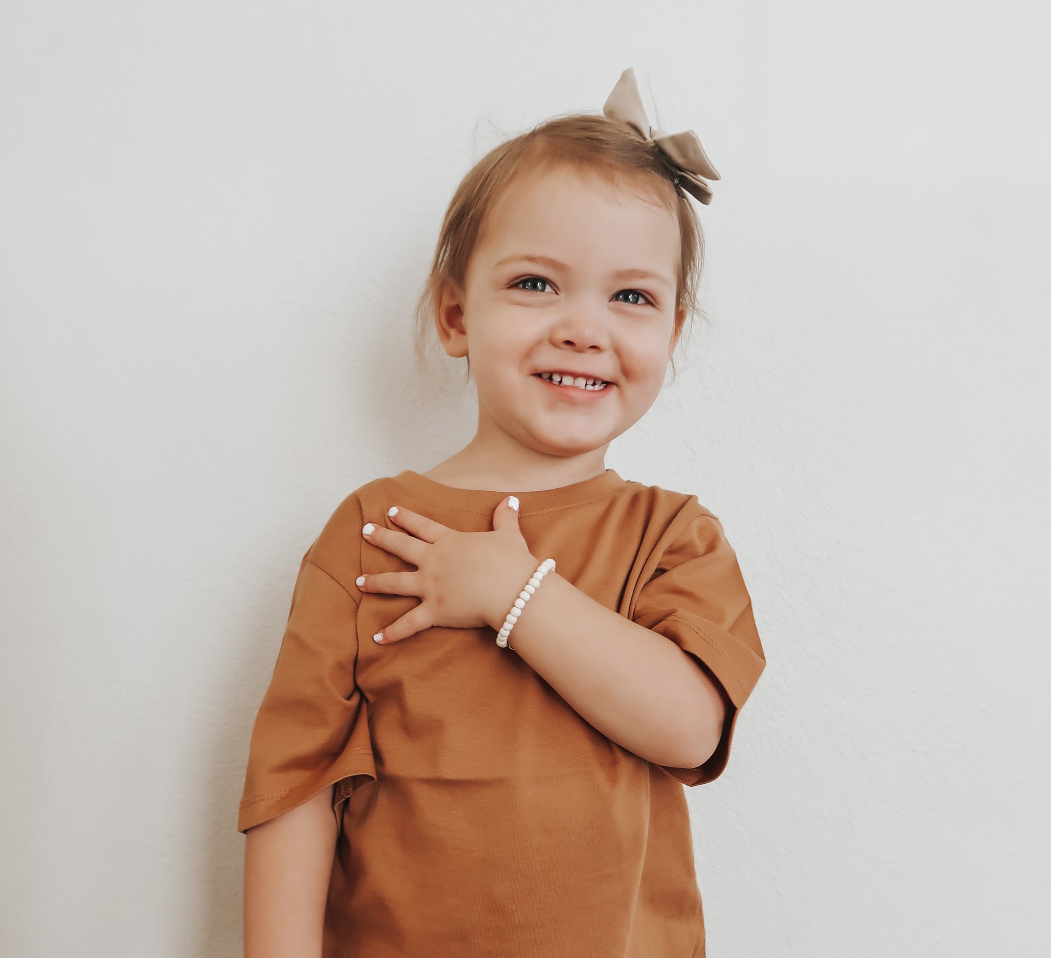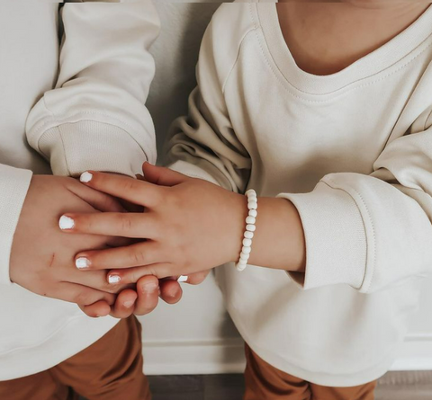 Our bracelets are made with a soft stainless steel gold coated copper wire, perfect for your little one's wrists. They are also made with real stone and handmade with love.